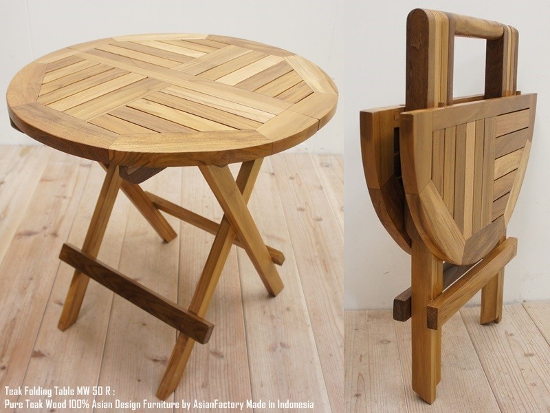 - チーク無垢材 折りたたみテーブル50R ラウンドテーブル 丸型 円卓 円形 アジアン家具 机 木製 コーヒーテーブル サイドテーブル