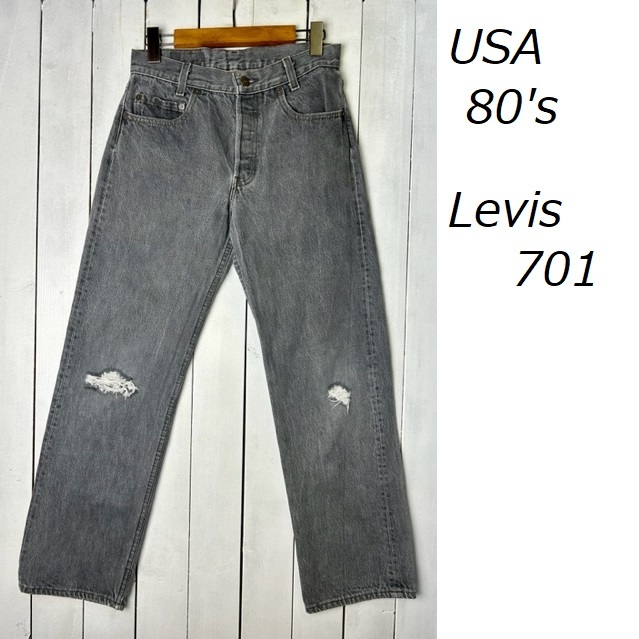 > USA古着 80s USA製 Levis 701 先染め フェードブラックデニムパンツ STUDENT26 ヴィンテージ リーバイス 黒 XS~S ダメージ グランジ●156