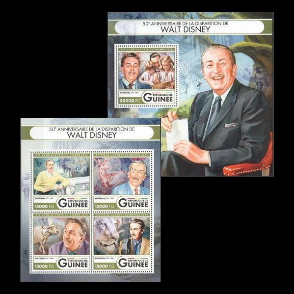 - ■ギニア切手 2016年 ウォルト・ディズニー 50周年 シート+4種シート