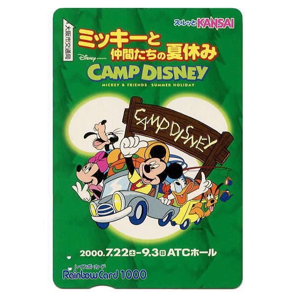 > ディズニー FAB5 使用済みレインボーカード ミッキーと仲間たちの夏休み CAMP DISNEY 大阪市交通局 スルッとKANSAI 2000年