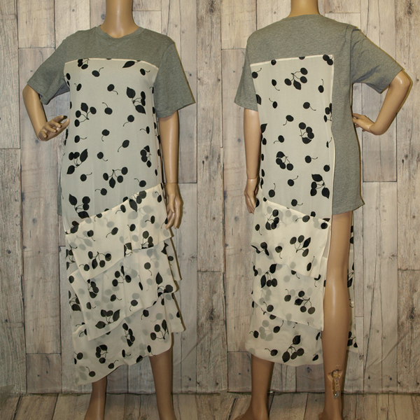 - 3.1 Phillip Lim◇ 3.1 フィリップ リム・CHERRY PRINT TIERED CHIFFON PANEL T-SHIRT◇試着のみ使用 XS 美品
