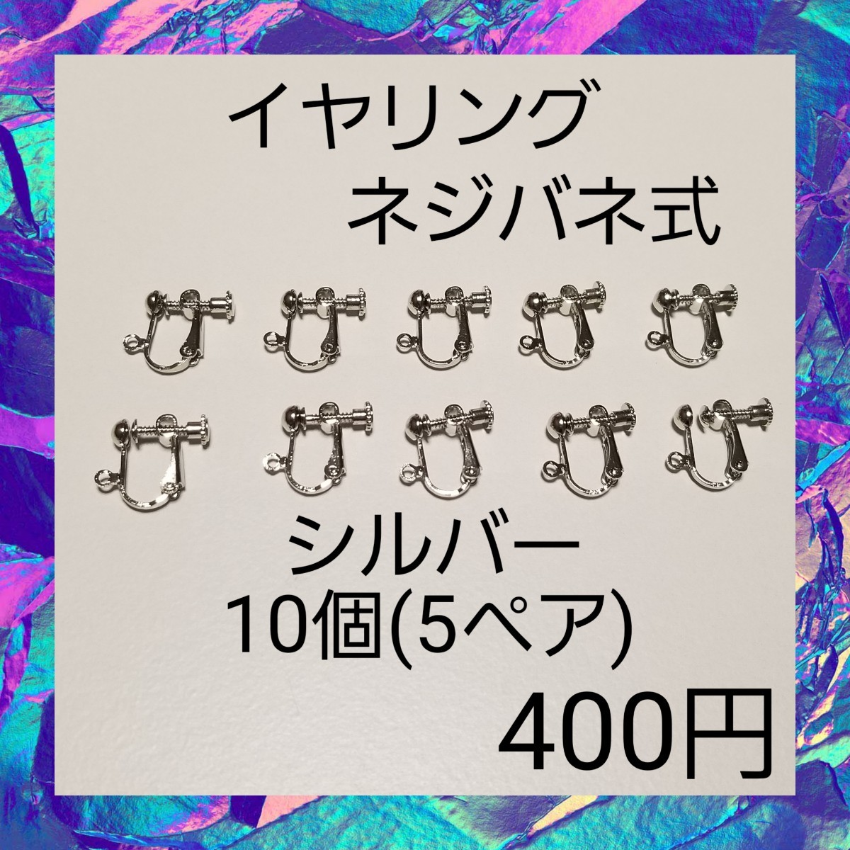 - 【ハンドメイドパーツ】カン付き ネジバネ式 イヤリング シルバー 10個 02