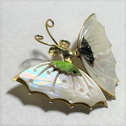 - 【19】 白い蝶々さんのブローチ ブローチ シェル風 ちょうちょ 3.5×4.5㎝ 中古長期保管品