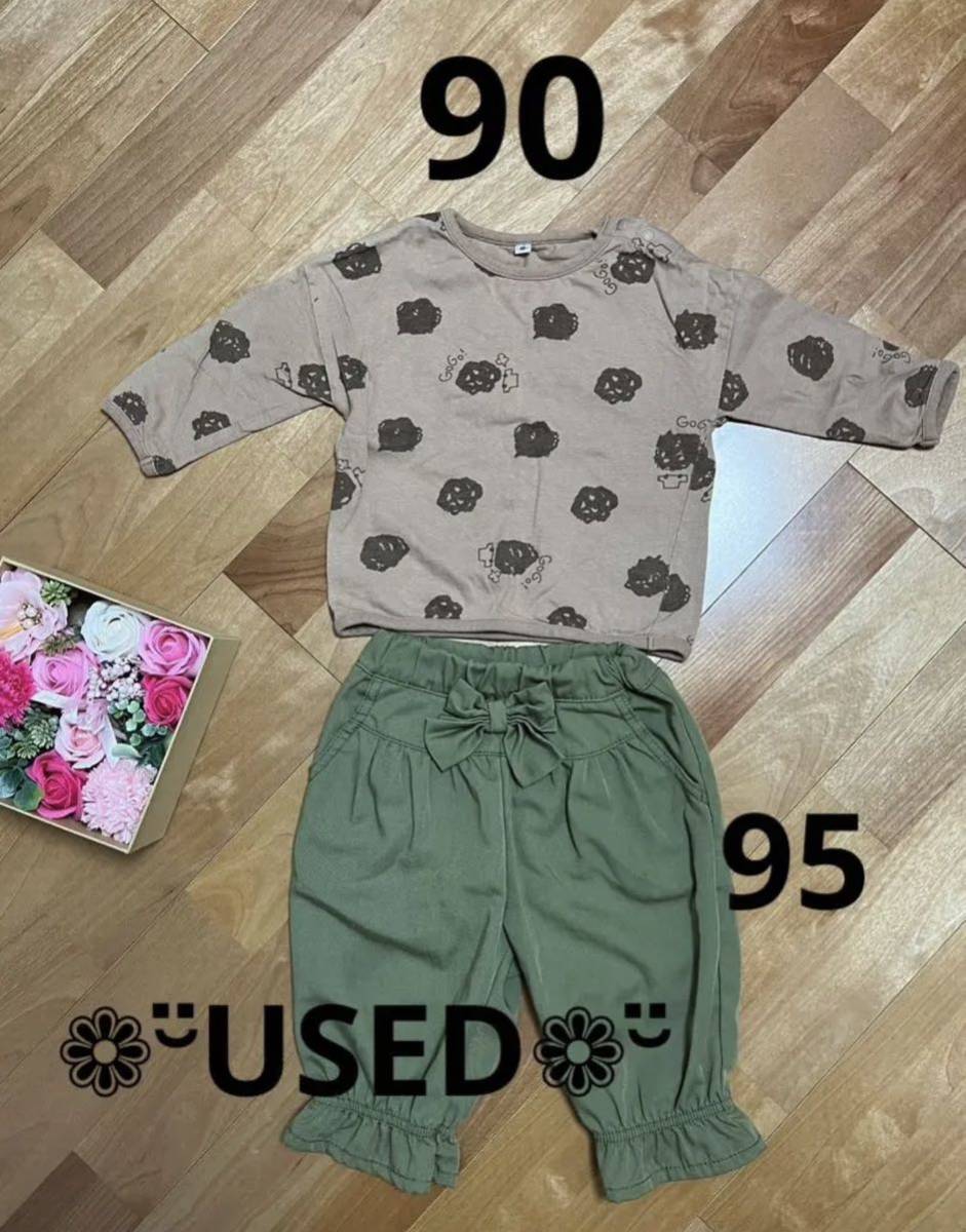 - 八分袖トップスと八分丈パンツ2点セット 90cm