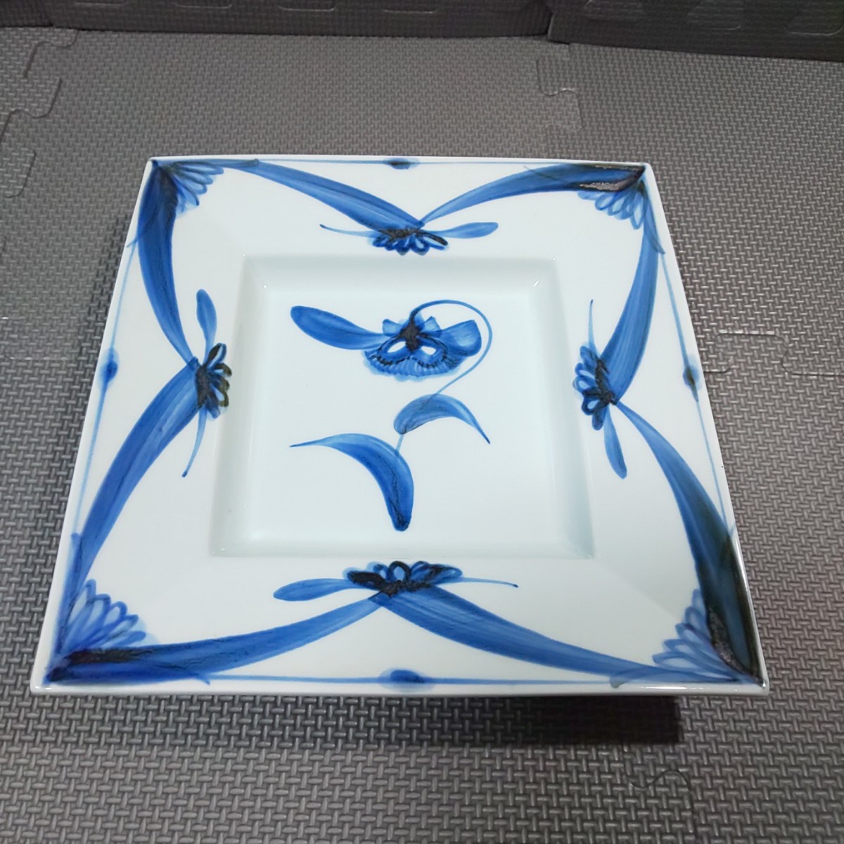 - 砥部焼「梅山窯 角皿 1枚」約22cm スクエアプレート 皿