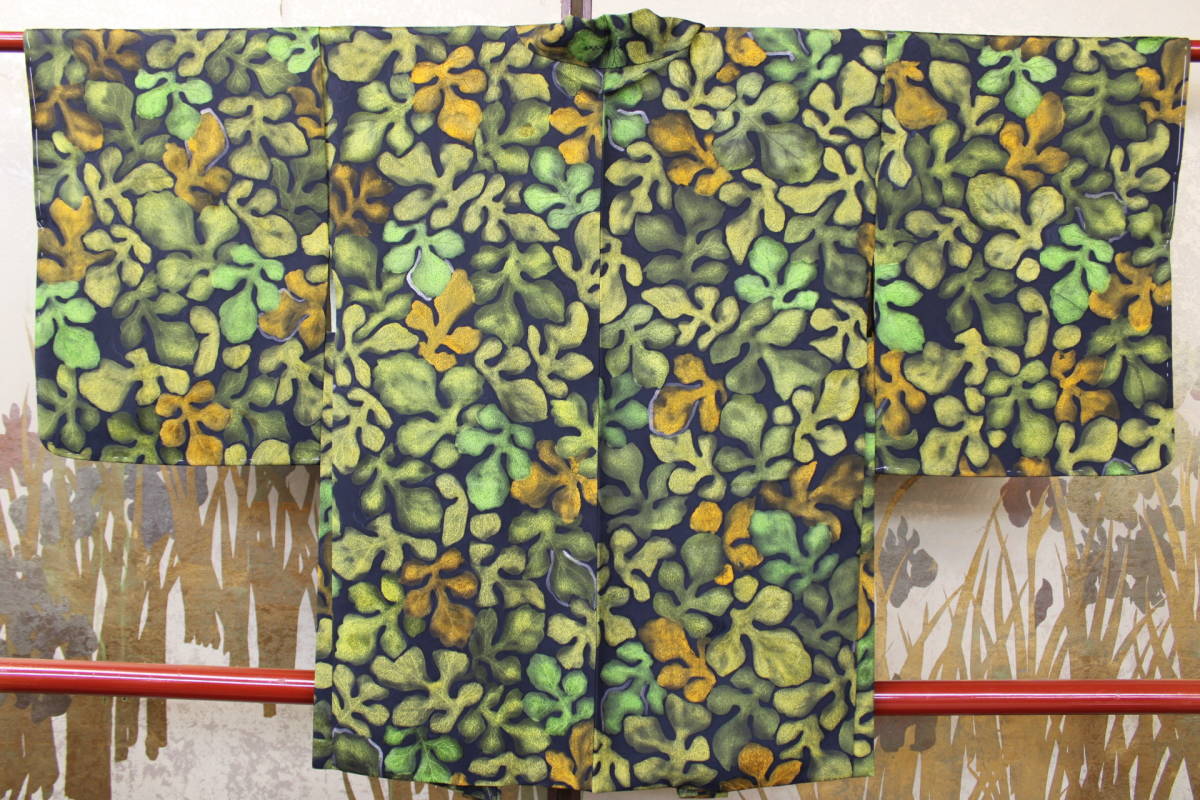 - きもの今昔5049 お羽織コレクション 正絹一越地 高級蝋彩手描き 肩裏高級綸子地楓柄 身丈79cm