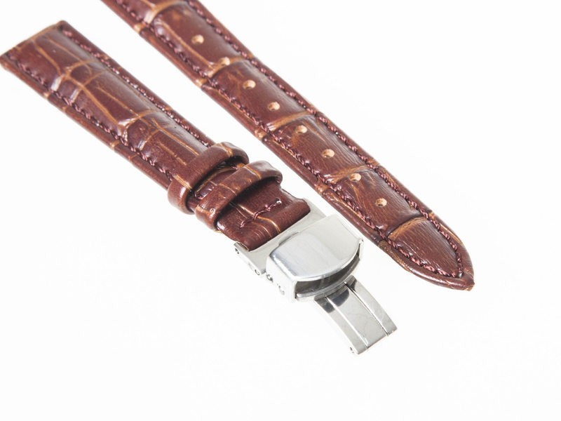 - 汎用 本革 ワニ革風仕上げ 腕時計 ベルト ブレスレット バンド 交換用#幅20mm ブラウン
