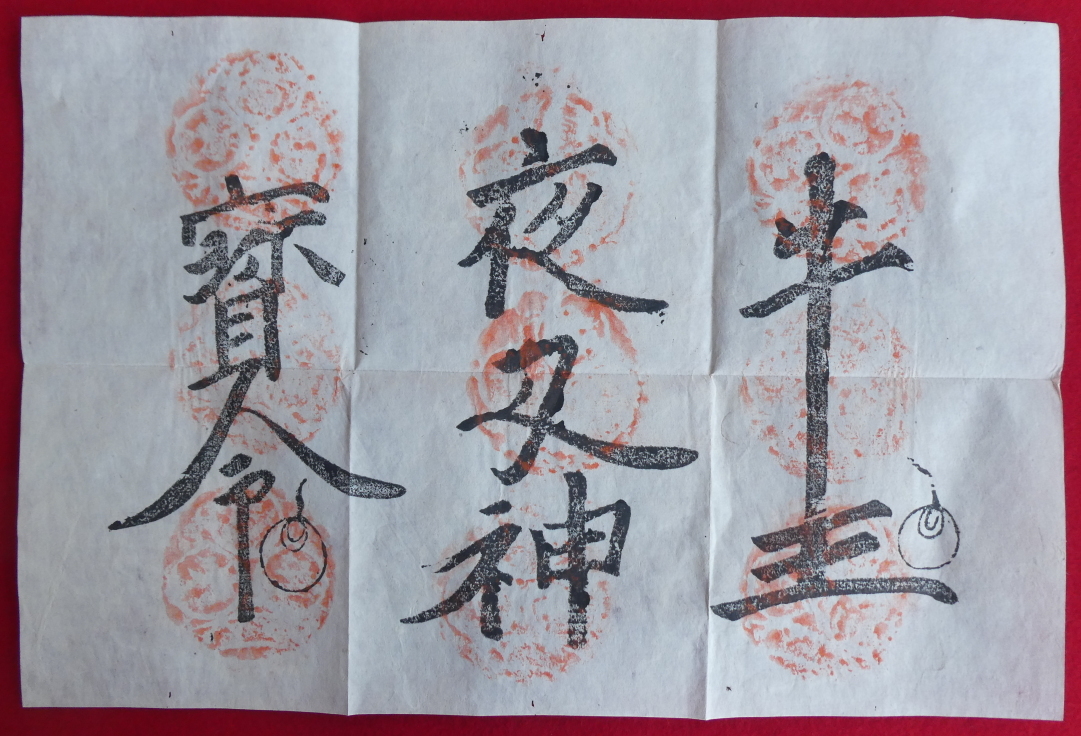 - ■ 弘化四年(1846) 東寺【夜叉神】牛王宝印■江戸期 教王護国寺 牛玉宝印 厄難除け 護符 御符 木版 弘法大師 空海 真言密教 御朱印 京都■