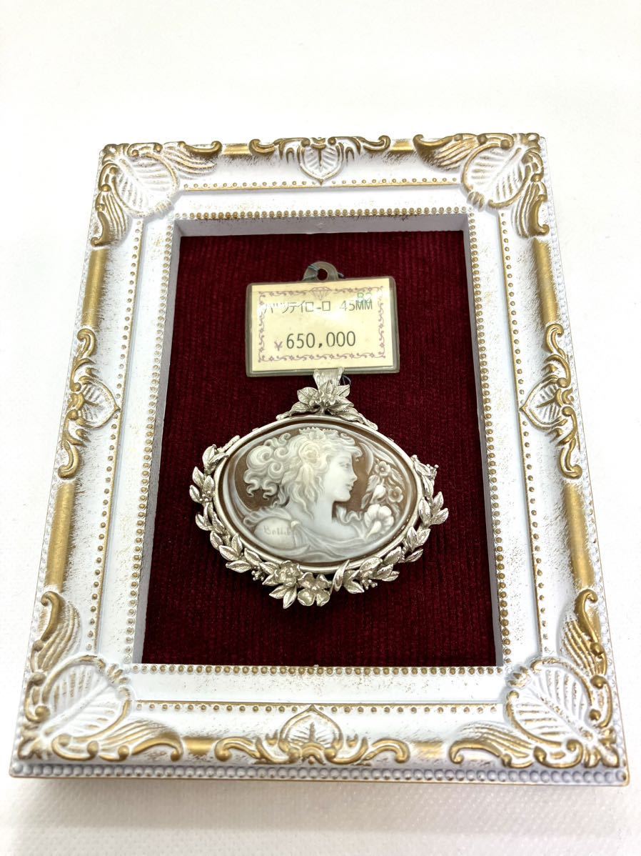 - 【新品】イタリアカメオ彫刻家バツテイローロ氏K18WGシェルカメオ*ブローチ兼ペンダントトップ/女性