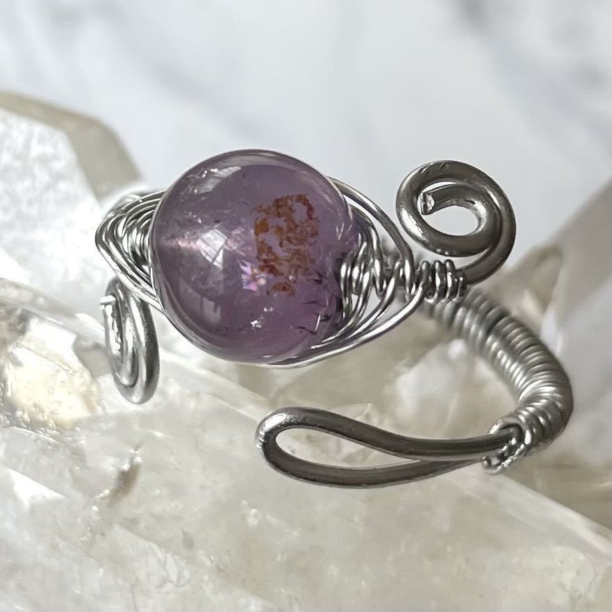 - YR61. 天然石ワイヤーリング オーラライト23 指輪 天然石リング ハンドメイドリング 水晶 フリーサイズ オープンリング ニッケルフリー