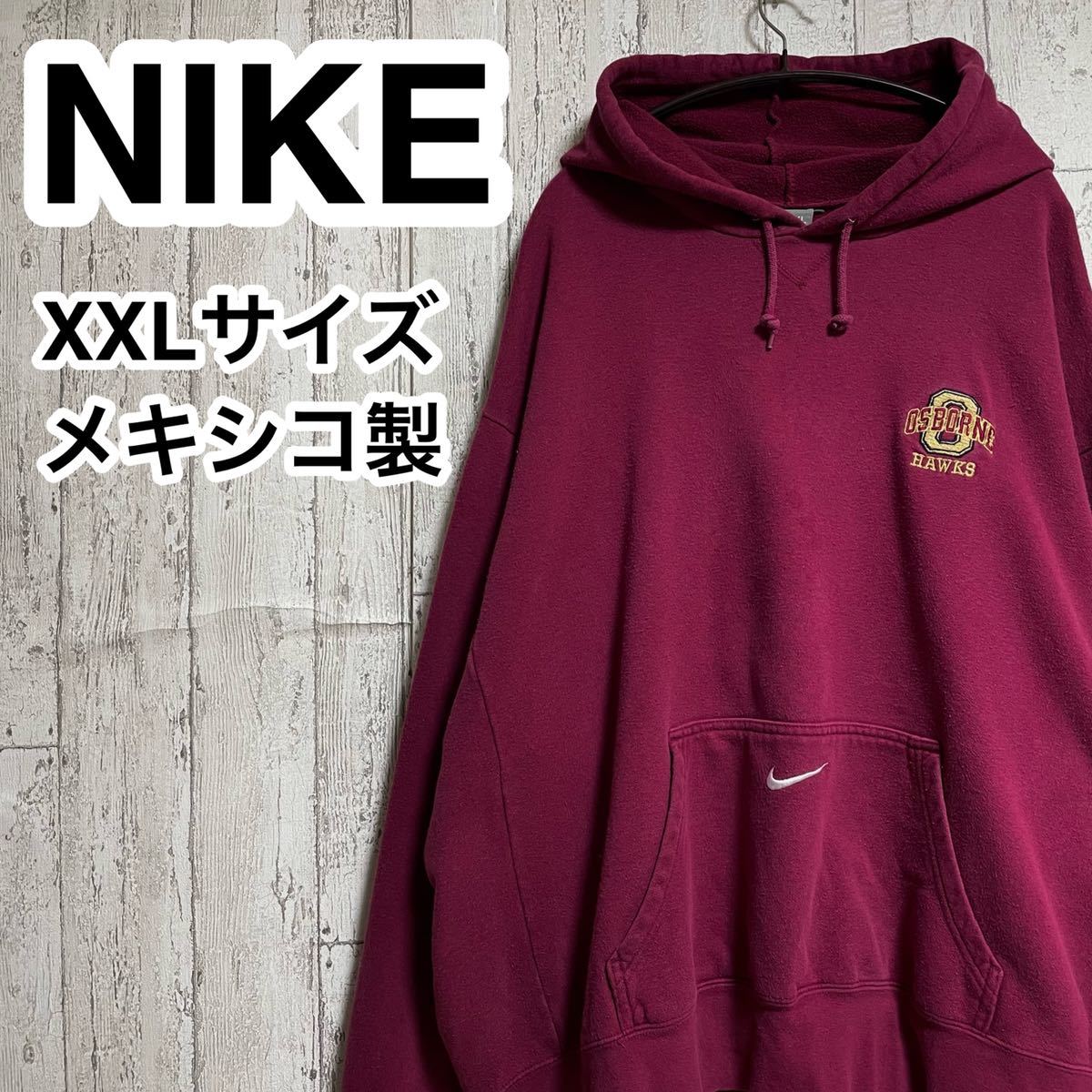 > ☆送料無料☆ NIKE ナイキ スウェットパーカー XXL ボルドー ビッグサイズ ビッグシルエット スクール物 メキシコ製 22-201