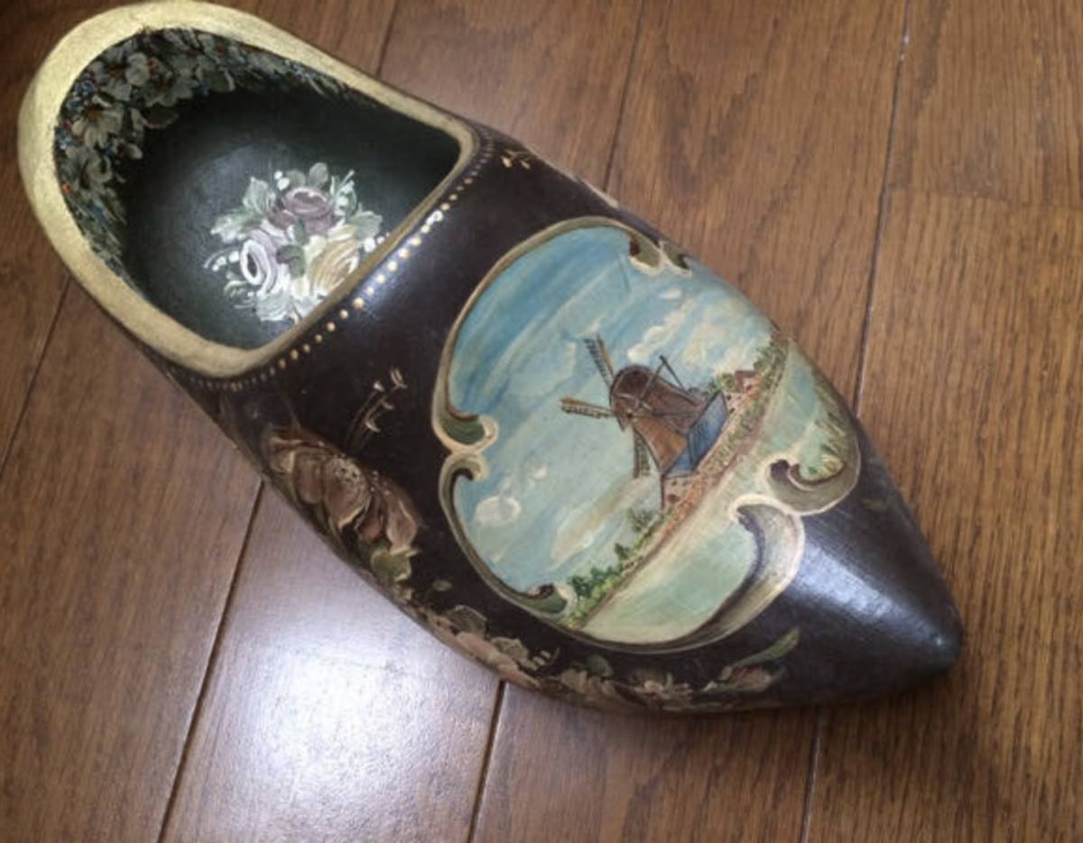 - トールペイント 木靴?展覧会で有名な先生から購入 風車 茶系