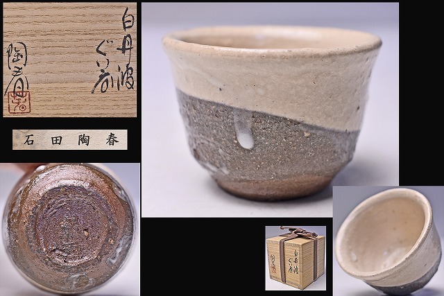 - 石田陶春 ★ 白丹波 ぐい呑 ★ 共箱 栞 ★ 師: 森本陶谷 ★ 使うほどに味わいの出そうな逸品 ★ 酒器