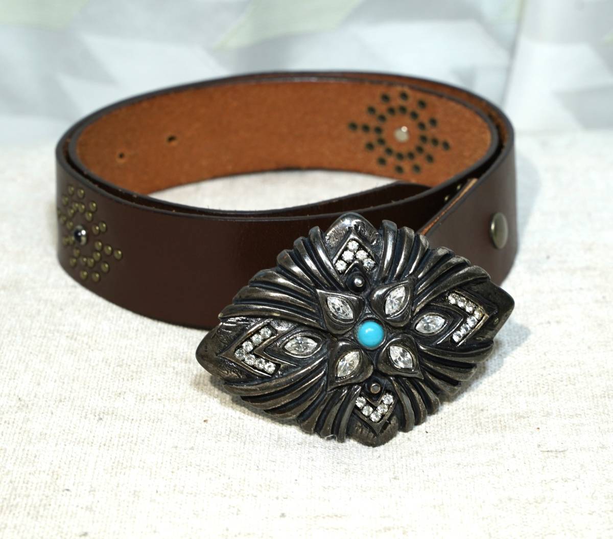 - EA バックル イタリア製 レザーベルト 茶 ブラウン 高級感 バックル金具交換可能 スナップボタン