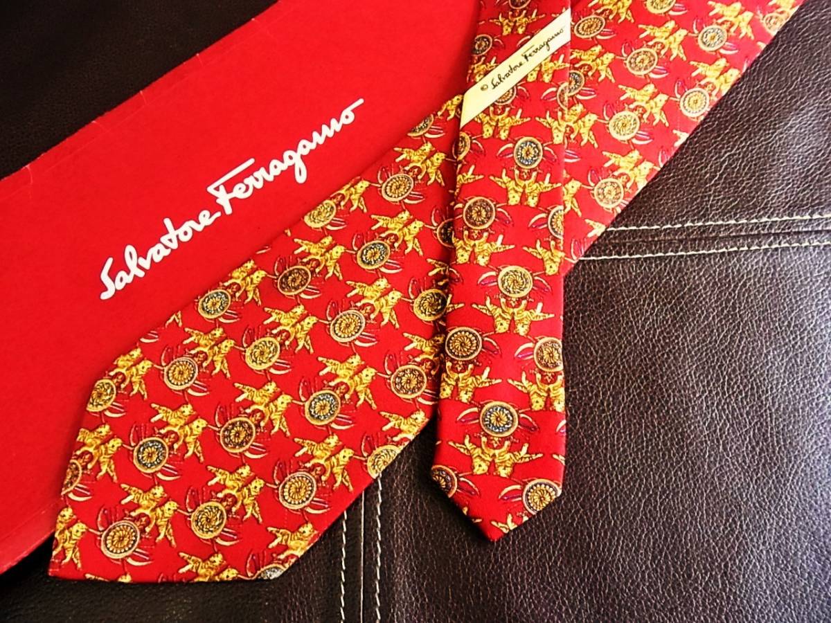 - 【在庫処分セール】5-7792z■フェラガモ【虎・トラ】ネクタイ★