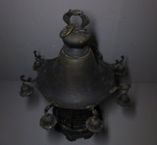 - 【史】古銅製 八角吊灯篭 透かし文様 置灯篭 完品
