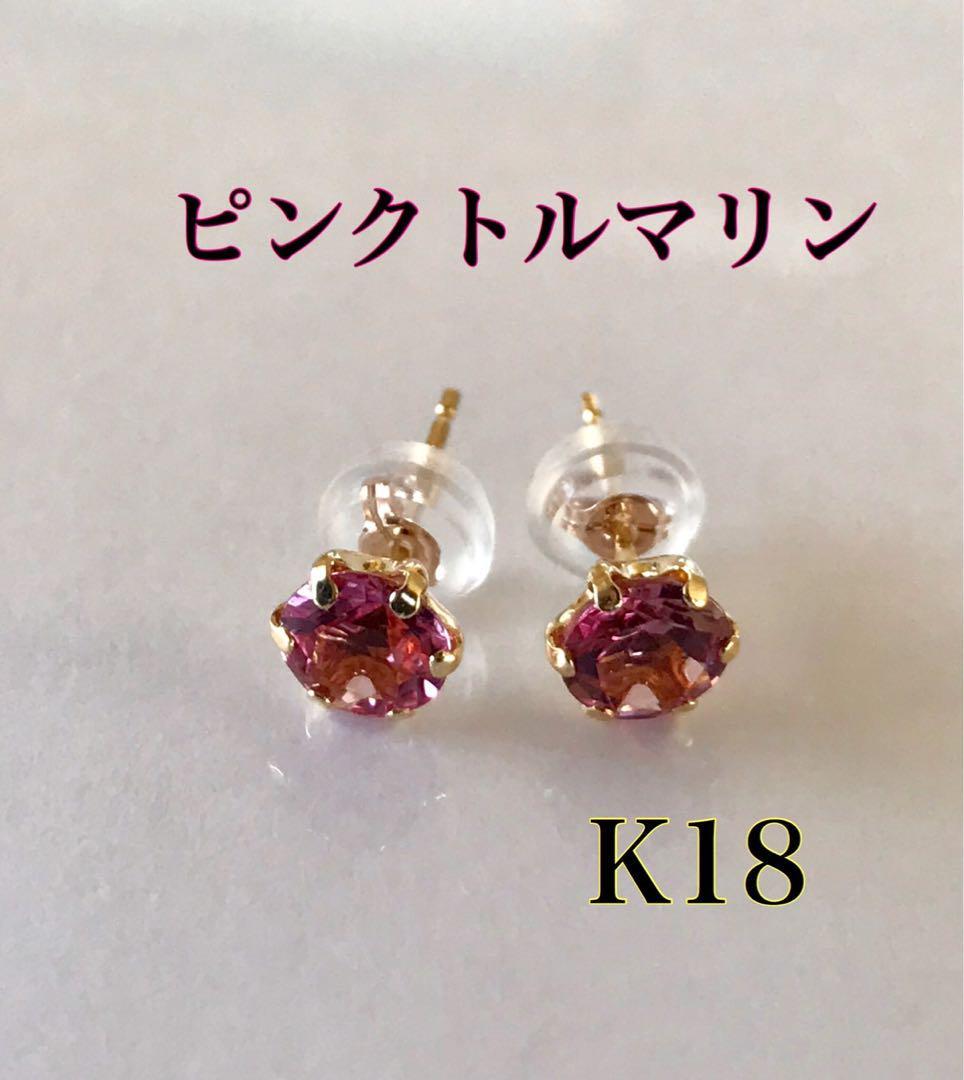 - ピンクトルマリン ピアス K18ピアス 10月誕生石 大粒ピアス 送料無料