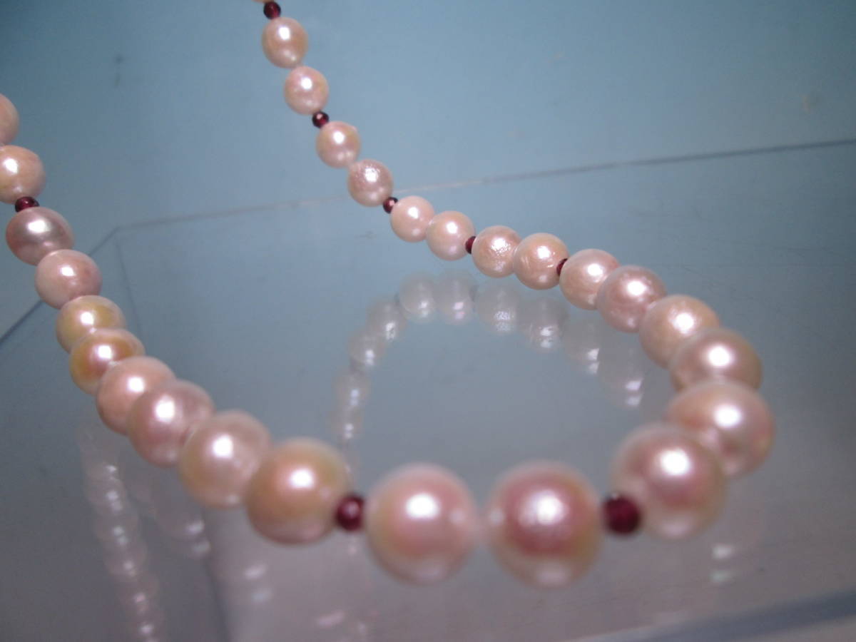 - ☆SILVER 本真珠珠 6.5~6.8mm&ガーネットのネックレス 26,6g 美品