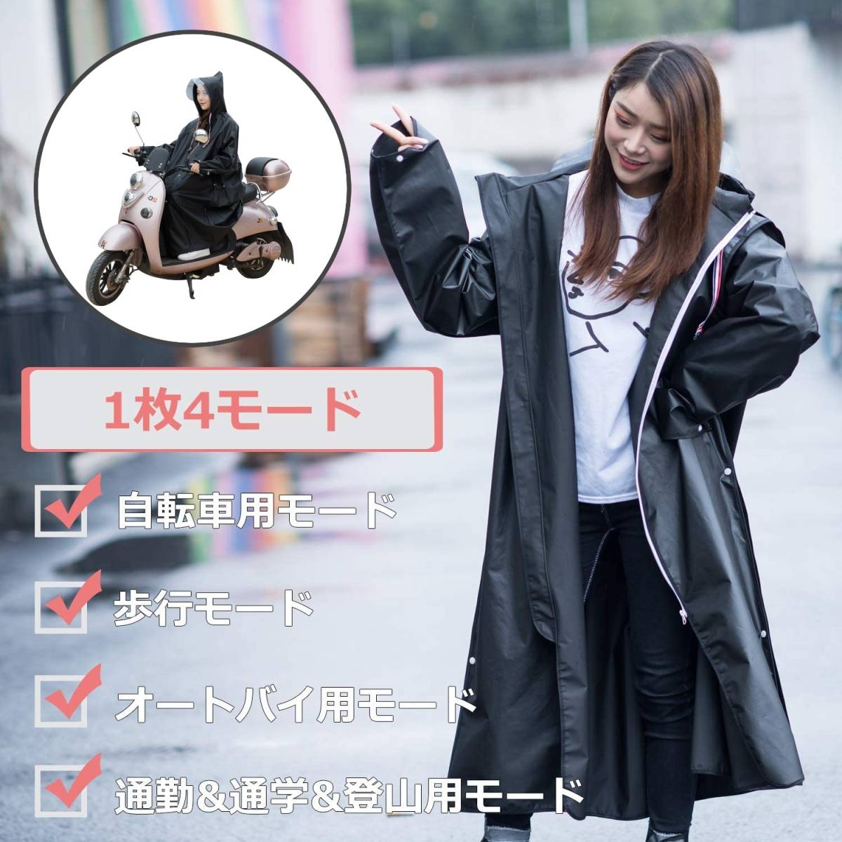 - 送料無料★新品 男女兼用 4WAY レインコート 通勤 通学 雨対策 自転車 バイク通勤 黒 レインウェア★フリーサイズ