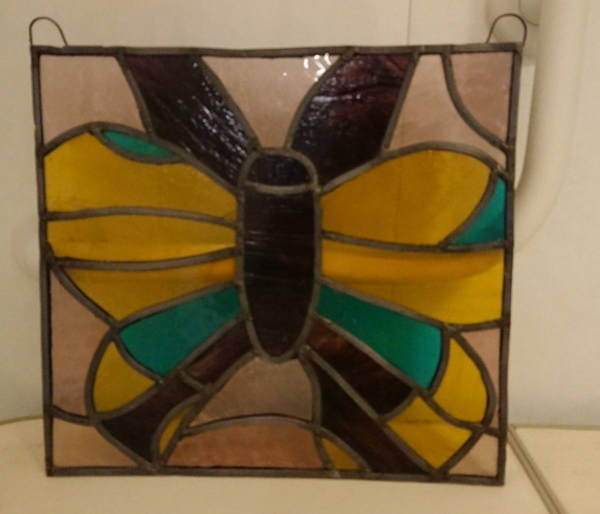 > ステンドグラス☆蝶をモチーフにしたステンドグラスのパネル☆大きさは縦32.5×横35㎝~光を通すと色がきれいです~