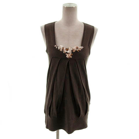 > ビアッジョブルー Viaggio Blu ニット ノースリーブ ビーズ タック コットン混 ブラウン 茶 2 レディース