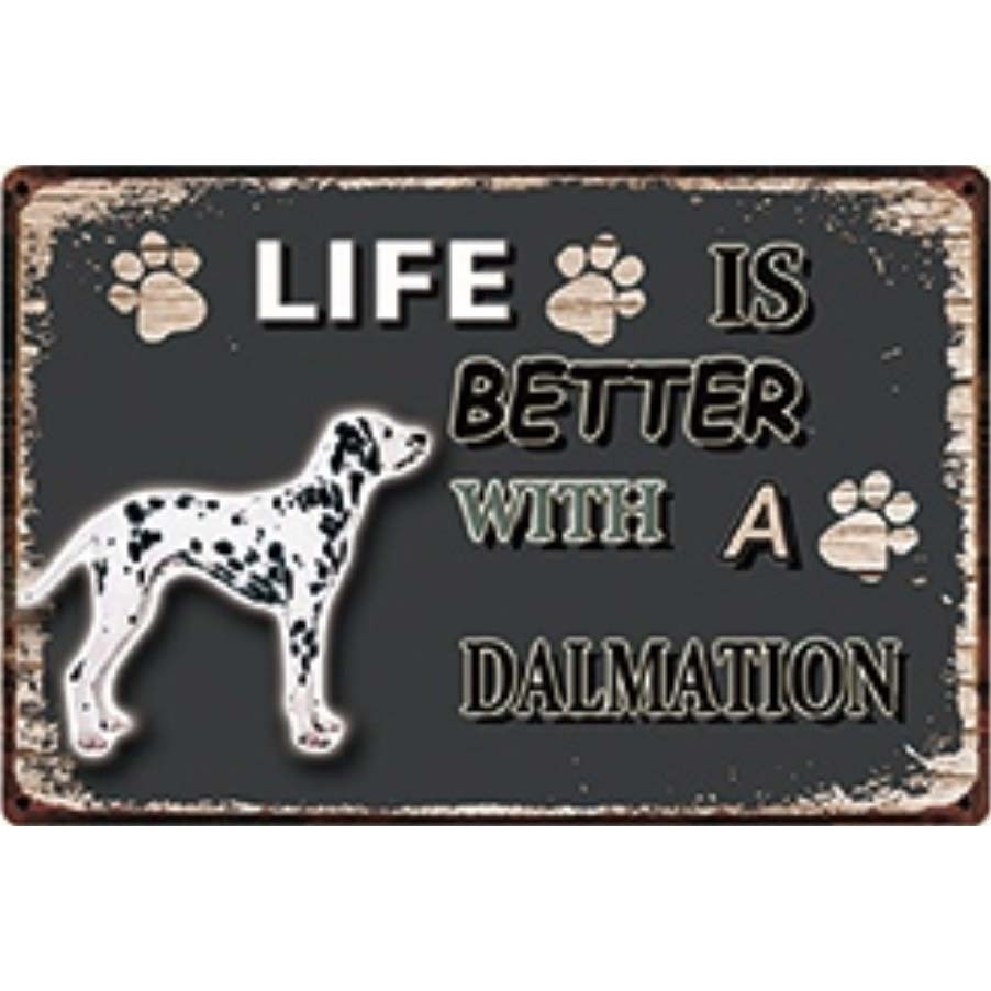 - A3177 メタル サイン ブリキ 看板 金属 製 プレート パネル 注意 警告 動物 ペット 犬 番犬 LIFE IS ダルメシアン【3972】