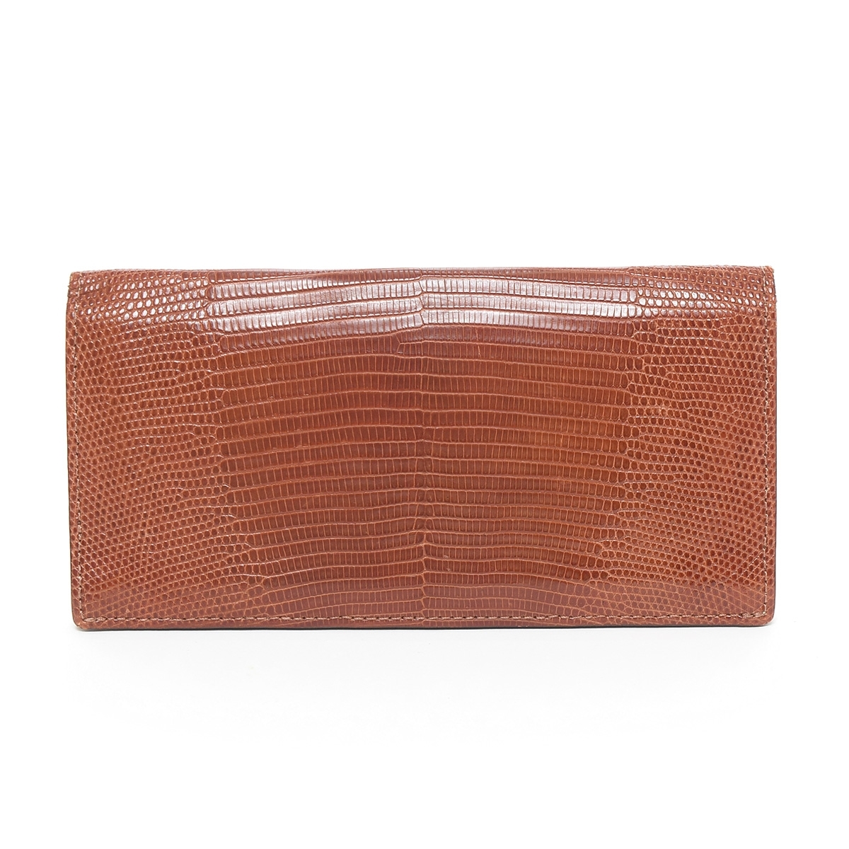 - ●475253 GANZO ガンゾ ●二つ折り長札入れ 長財布 リザード レザー メンズ ブラウン