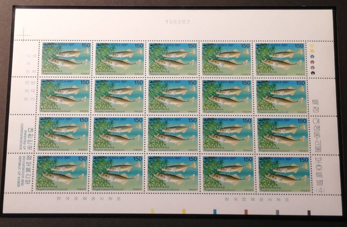 - 韓国(2) 魚(1種(20枚)シート) MNH