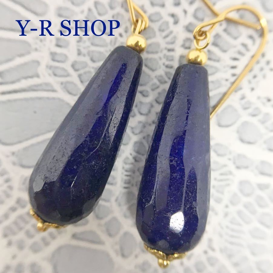 - 天然石★雫型サファイアのゆらゆらピアス★レディースゴールドアクセサリーカラーストーン エスニックインドジュエリーY-RSHOP卸売