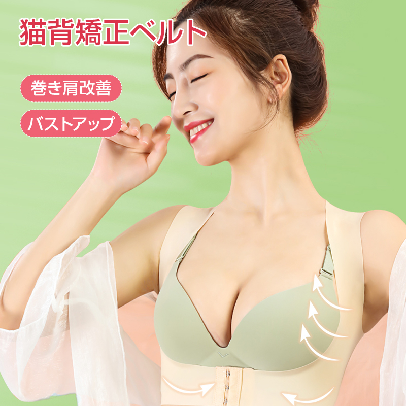 - 猫背 矯正ベルト 姿勢矯正 女性用 巻き肩 背筋 サポーター ベージュ 薄い 痛くない バストアップ 矯正ブラ 肩こり 下着 椅子 インナー