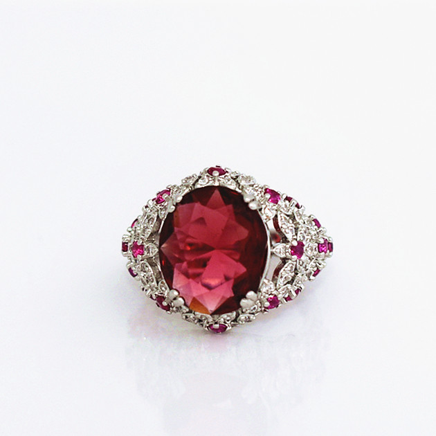 - 豪華 結婚式 パーティーアクセサリー フリーサイズ ルビー風 指輪 リング