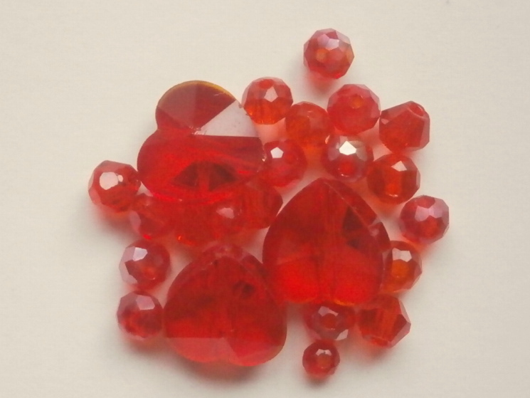 - ガラスビーズ★ハート★タイプ B★レッド系★3