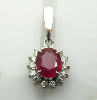 - ユーズド ルビーペンダントトップ R0.71ct D0.18ct Pt 瑞浪鉱物展示館 4343