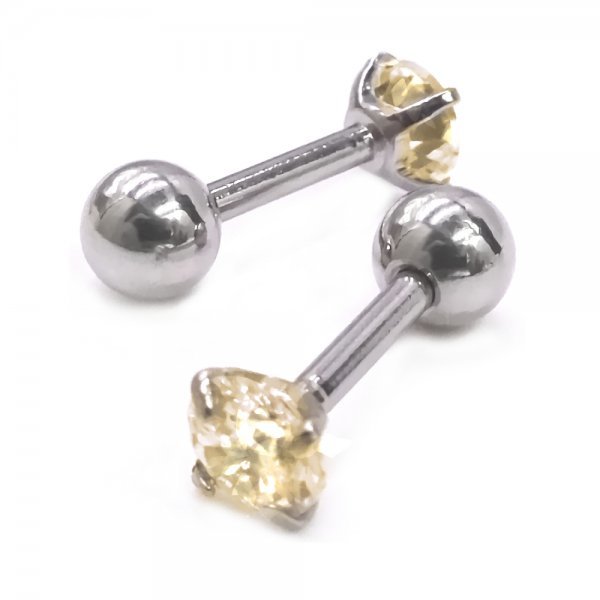- 金属アレルギー対応 ピアス つけっぱなし ボールキャッチ ジュエルピアス ファーストピアス ステンレス 両耳用 4mm シャンパン