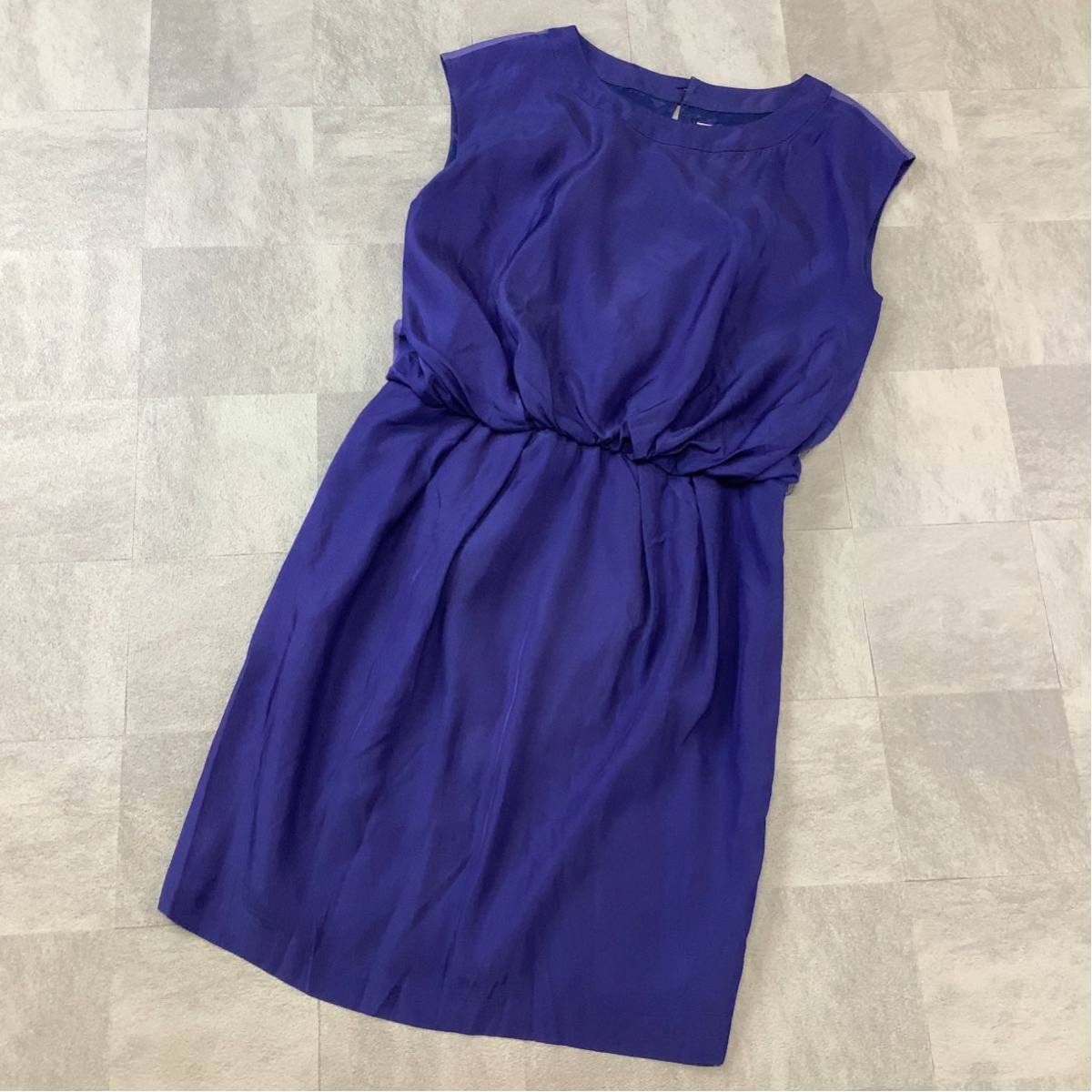 - 美品 ROPE ロペ 滑らかなキュプラ ノースリーブ ワンピース フォーマルにも レディース 38 Mサイズ パープルブルー