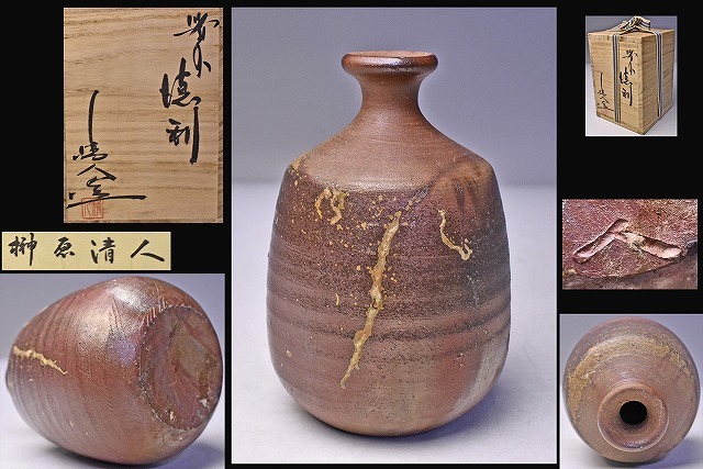 > 榊原清人 ★ 備前 徳利 ★ 共箱 栞 ★ 糸胡麻の景色が良い逸品 ★ 肩衝徳利 ★ 検 榊原貢 榊原学