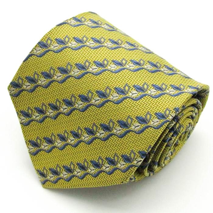 > イヴサンローラン シルク 総柄 小紋柄 ボタニカル柄 YSL 高級 日本製 ブランド ネクタイ メンズ イエロー 良品 Yves Saint Laurent YSL