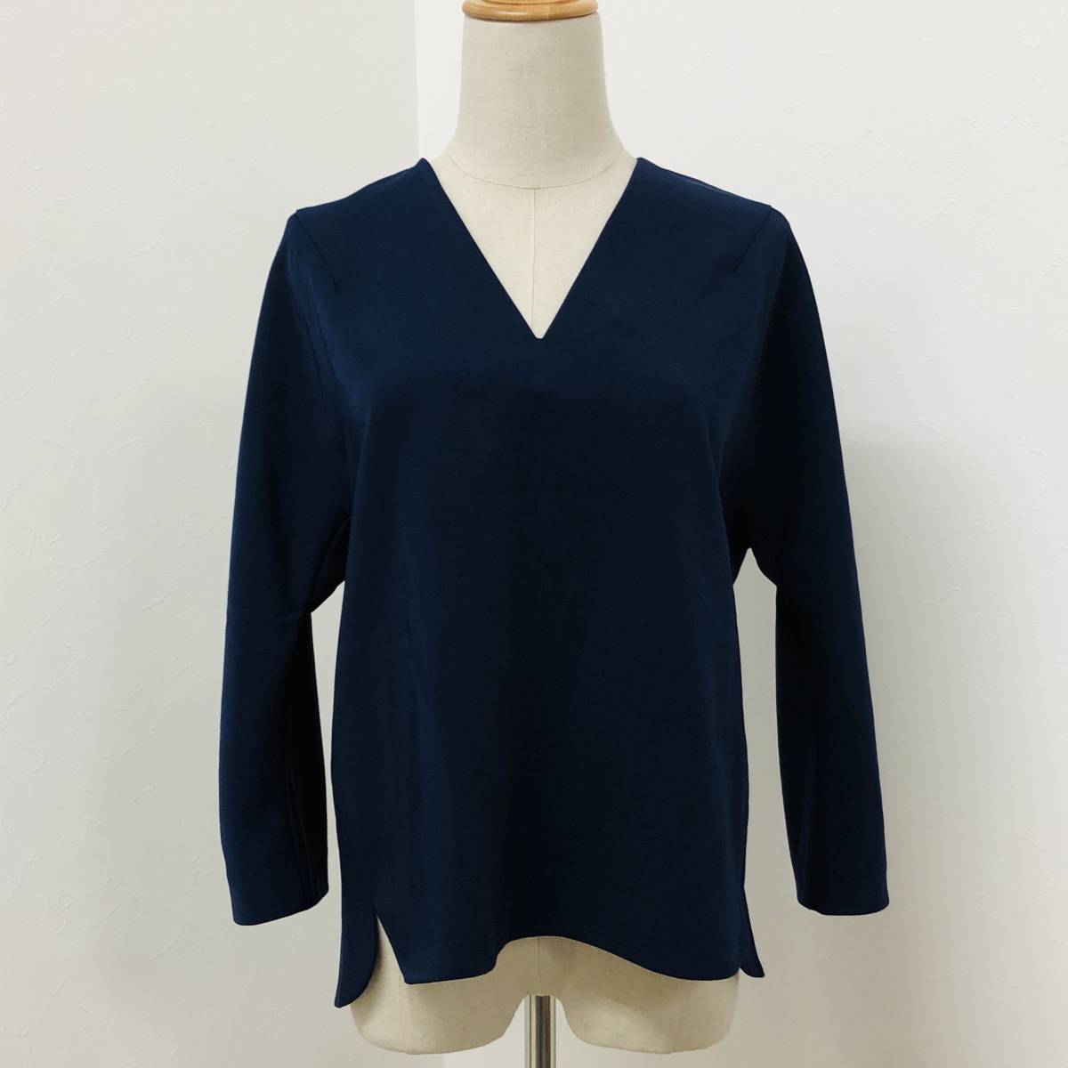 - a01588 美品 titivate ティティベイト トップス 七分袖 Vネック シンプル F ネイビー 無地 落ち感 上品 オフィススタイリッシュルック