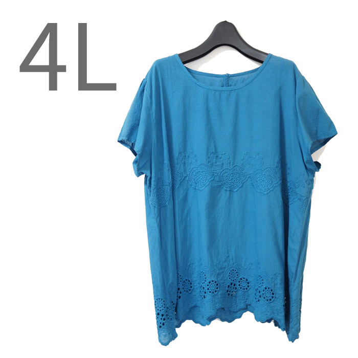 - ●新品/プルオーバー/ブラウス/レース/4L/刺繍/ブルー系/レディース●f6265