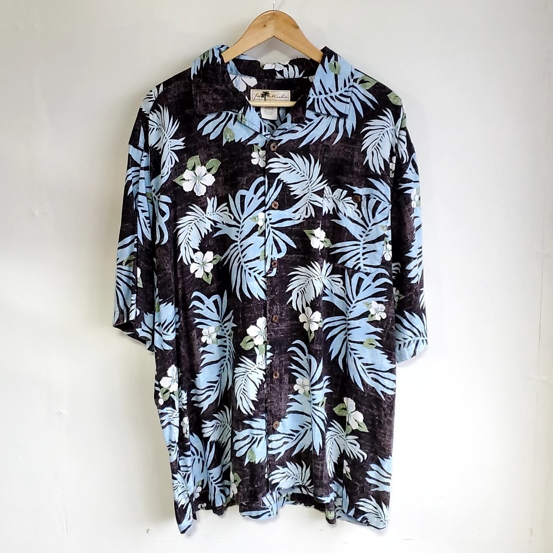 > 240◆JOE MARLIN アロハシャツ size2XL 黒 ブラック リーフ柄 コットン×レーヨン USED ビッグサイズ オーバーサイズ キングサイズ