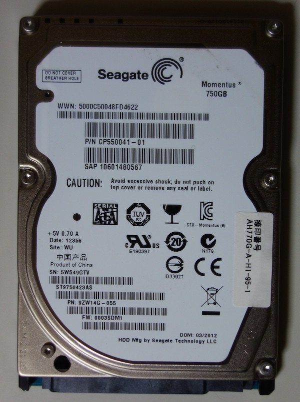 - 3758 2.5インチ内蔵SATAハードディスク 9.5mm 750GB Seagate ST9750423AS LIFEBOOK AH77/G Windows7Homeリカバリ領域あり 使用7386時間
