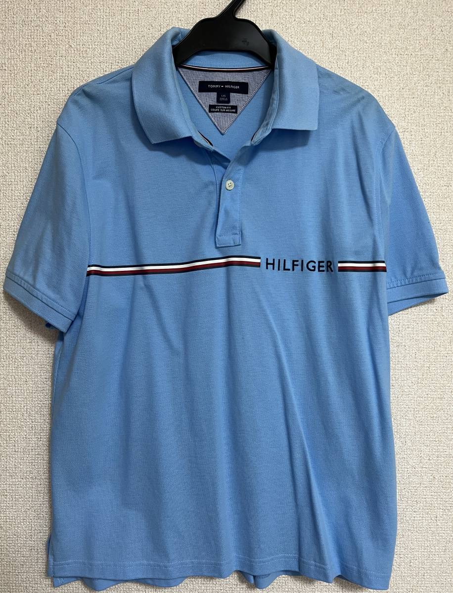 - ■最終価格 美品 希少 人気 最終 TOMMY HILFIGER トミー ヒルフィガー 半袖 ポロシャツ ブルー サイズL 鹿の子 メンズ ゴルフ レジャー
