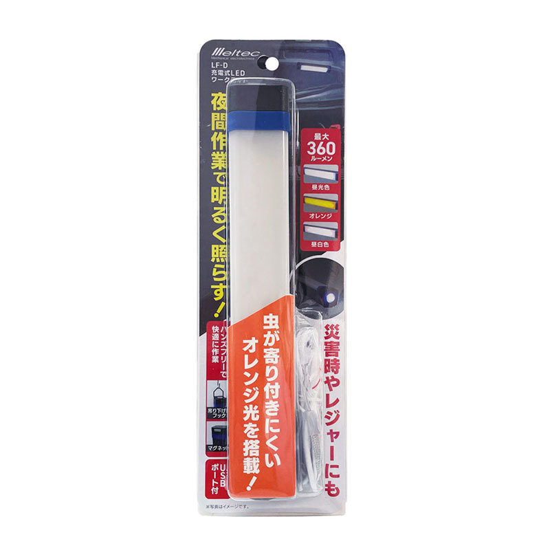 - 充電式LEDワークライト 最大360ルーメン オレンジ光搭載 夜間作業 災害時やレジャーにも USBポート付 大自工業 LF-D