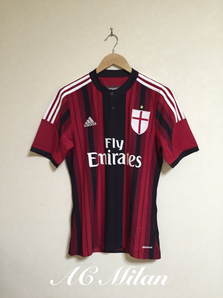 - 【新品】 adidas AC MILAN アディダス イタリア セリエA ACミラン 14-15 (H) ユニフォーム 半袖 サイズM サッカー ウェア トップス 赤黒