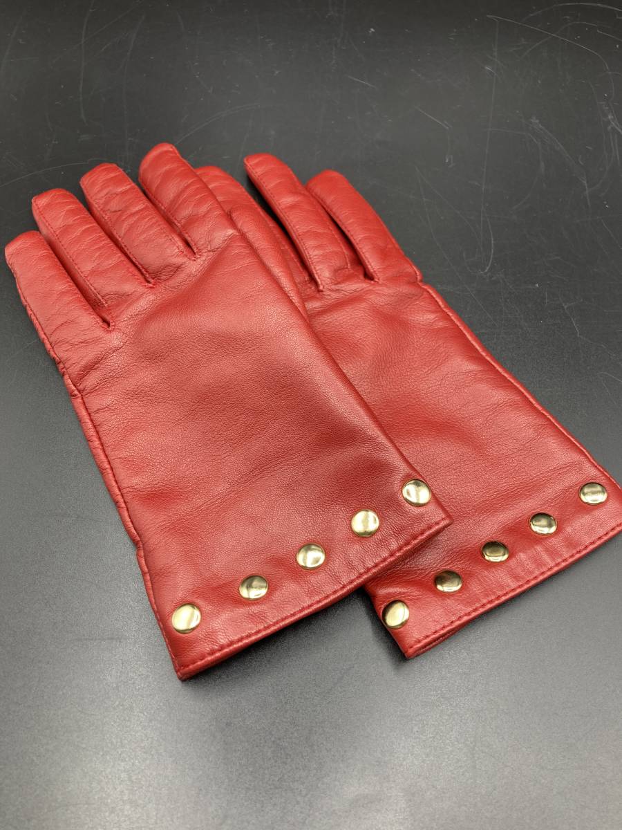 - 【594】バーバリー ブルーレーベル レザー 手袋 レッド系