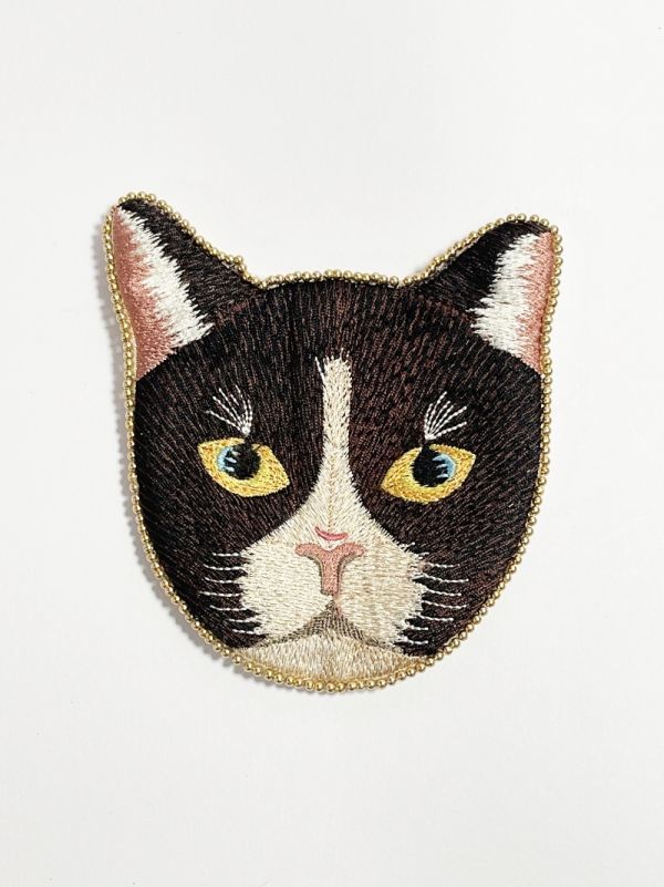 - 新品 ネコ 刺繍 ビーズ ポーチ ねこ 猫 キャット 小さめ 小物入れ ミニポーチ かわいい おしゃれ