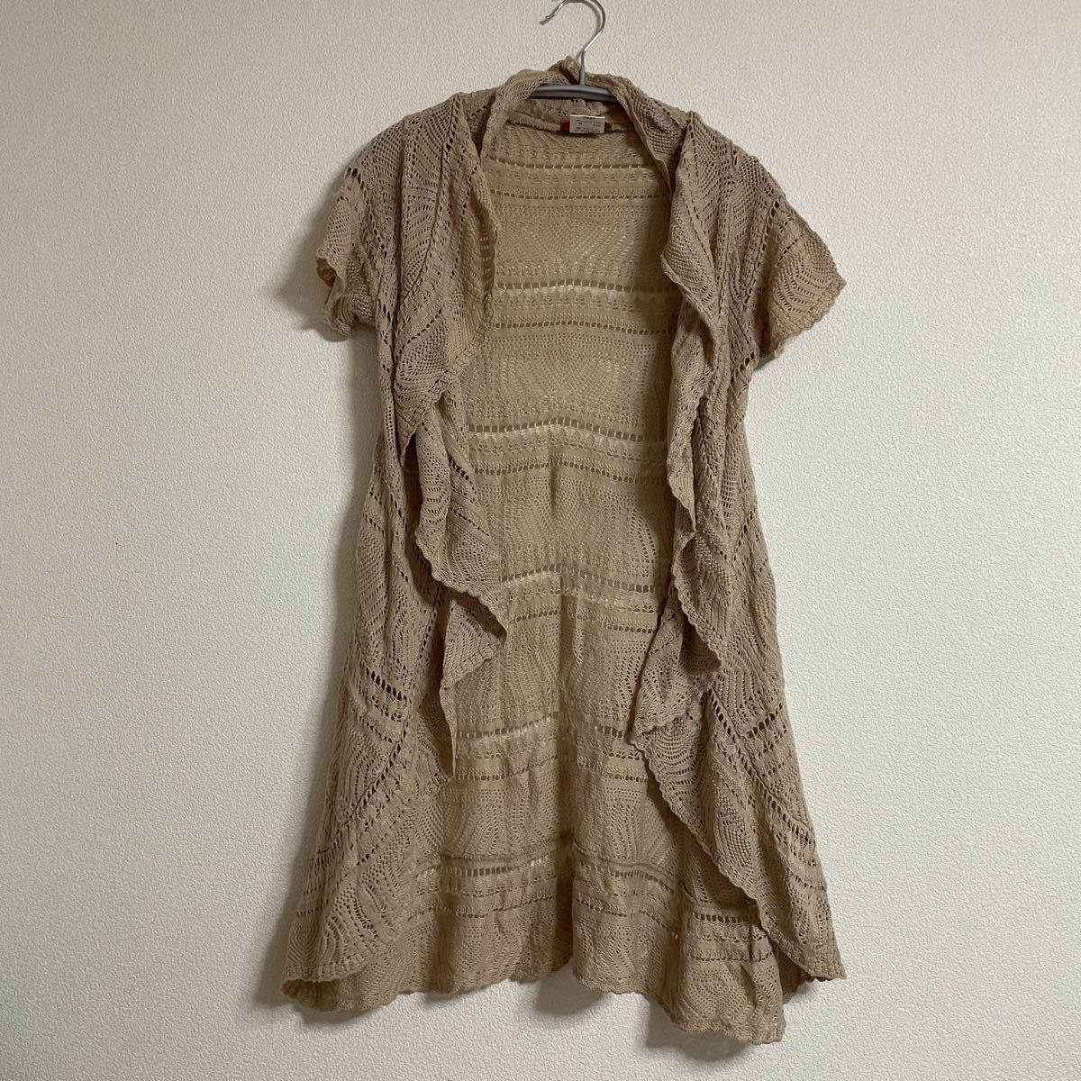 - 新品 半袖トップス ロングカーディガン フリー 未使用 ベージュ ゆるカーディ 羽織もの 日焼け防止 日焼け対策 冷房対策 透け感 日本製