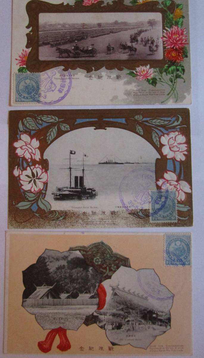 - 珍品・逓信省発行明治37-8年戦役(日露戦役)記念第5回発行絵葉書3種完(各絵葉書の特印が3印三位一体)
