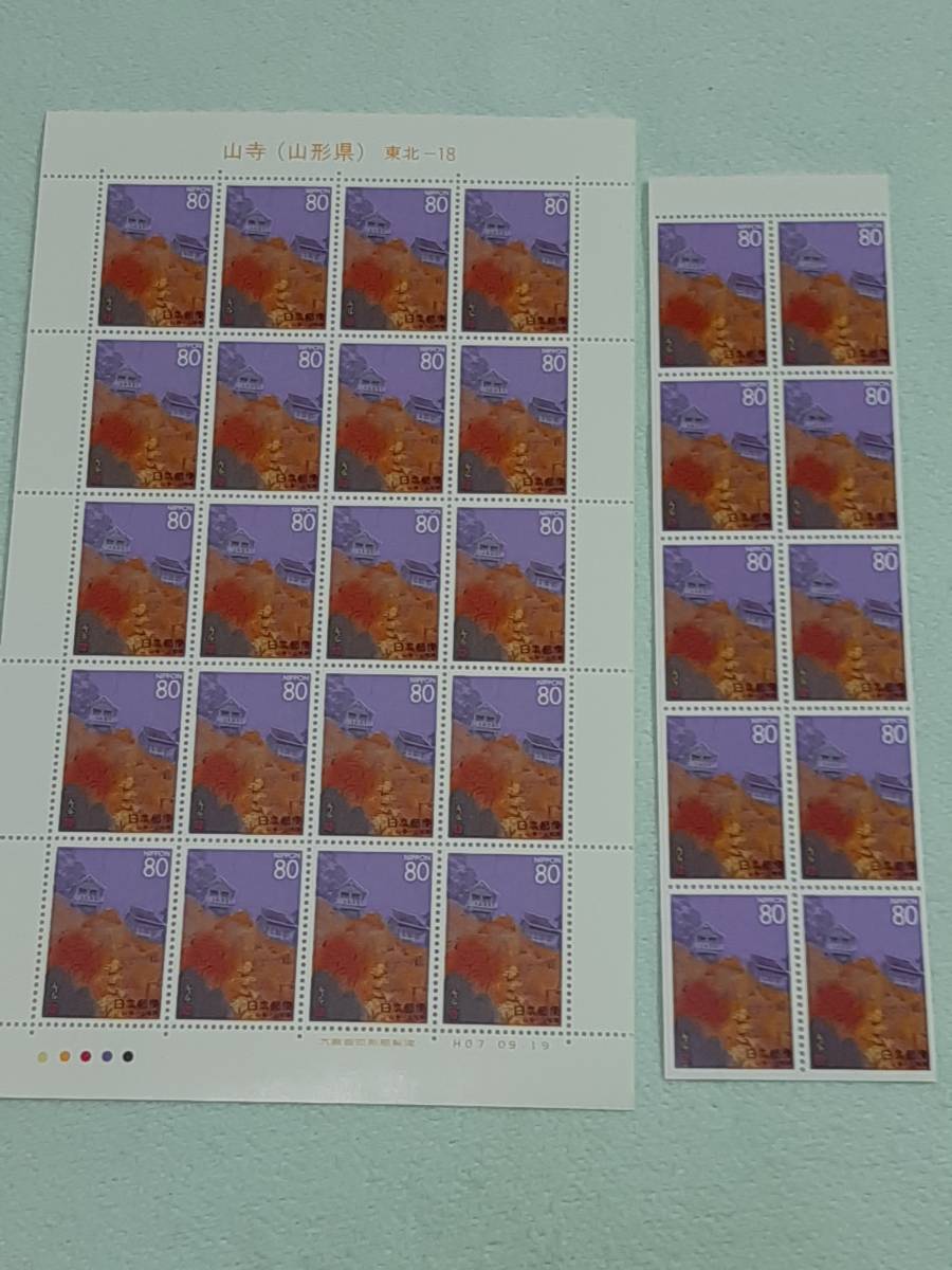 ふるさと切手 山寺(山形県)東北-18 1995 切手シート1枚と10枚シート