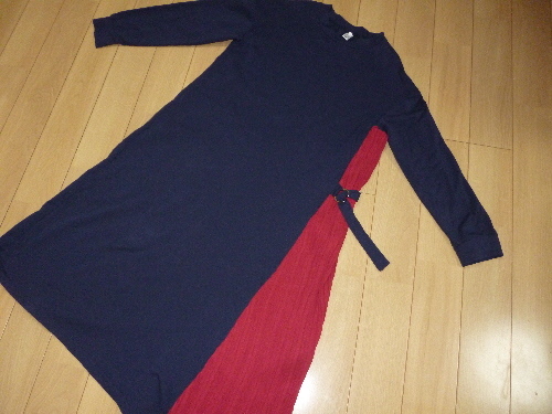 - 送料無料★ネイビー系&レッド系・長袖ワンピース・フリー★未使用
